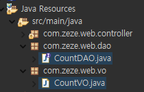 1. pom.xml 설정 mybatis 의존 추가 (mysql 기준) mysql-connector-java는 설치된 mysql과 호환이 되는지 반드시 확인 필요 mysql mysql-connector-java 5.1.6 org.mybatis mybatis 3.4.1 org.mybatis mybatis-spring 1.3.0 org.springframework spring-jdbc ${org.springframework-version} 2. root-context.xml 설정 src/main/webapp/WEB-INF/spring/root-context.xml 빈 등록 url : "jdbc:mysql://도메인:포트/데이터베이스이름?useSSL=false&serverTimezone=UTC" 3. DAO, ..